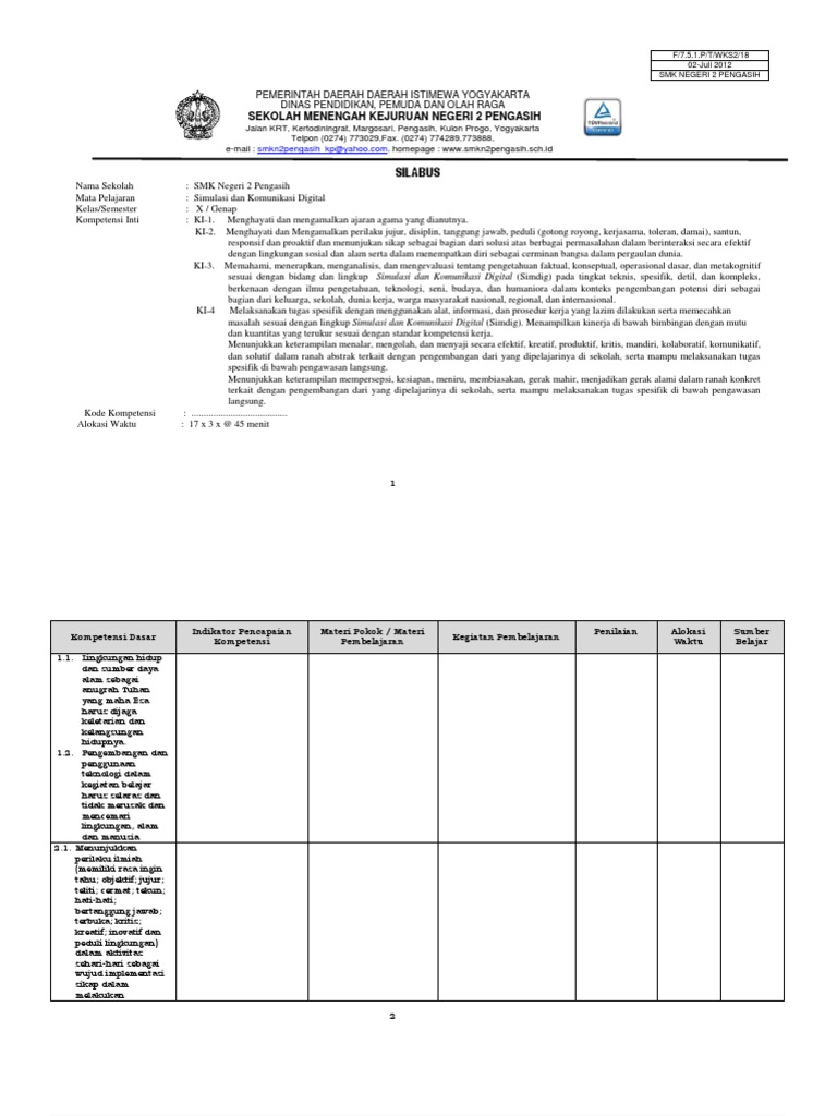 Memahami, menerapkan, menganalisis, dan mengevaluasi tentang pengetahuan faktual, konseptual. Simulasi dan komunikasi digital alokasi waktu kewargaan digital: Silabus mata pelajaran simulasi digital otomotif (dasar program keahlian teknologi dan rekayasa) satuan pendidikan : Finalisasi dan penyempurnaan silabus mata pelajaran simulasi dan komunikasi digital perlu dilakukan sehingga siap dituangkan kedalam rpp. Silabus simulasi dan komunikasi digital.